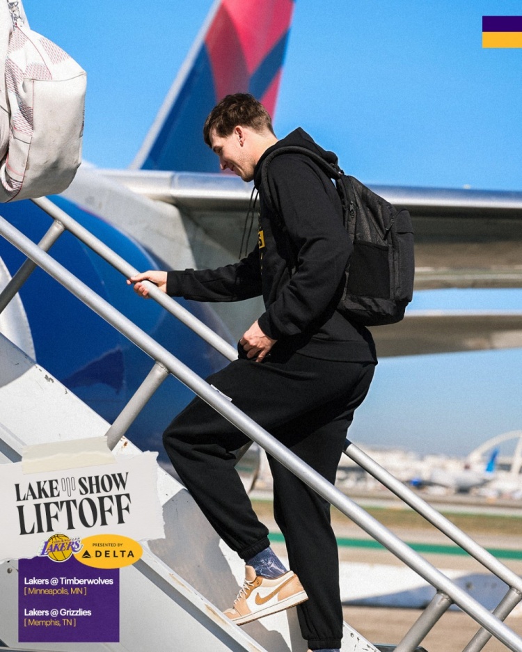 The Lakers officially posted photos of boarding for the away game: they will fly to Minnesota and Memphis next