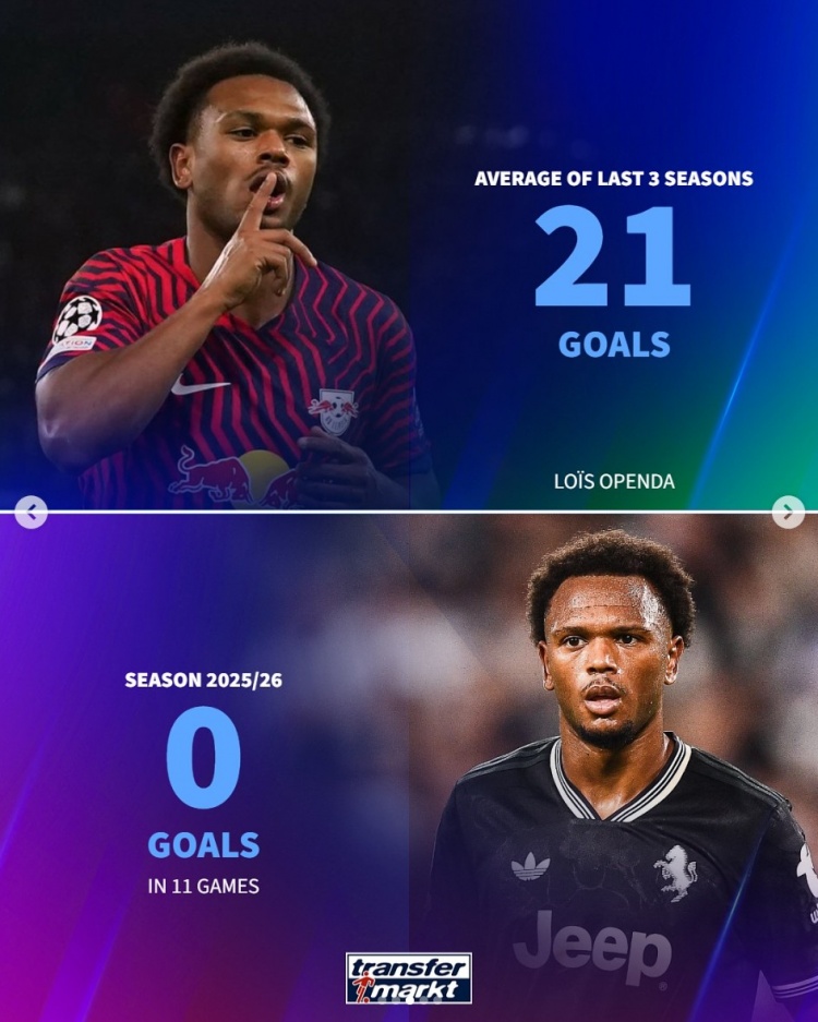 Oponda: 1 goal at Juventus this season 0 goals in 1 game, an average of 21 goals in the previous 3 seasons