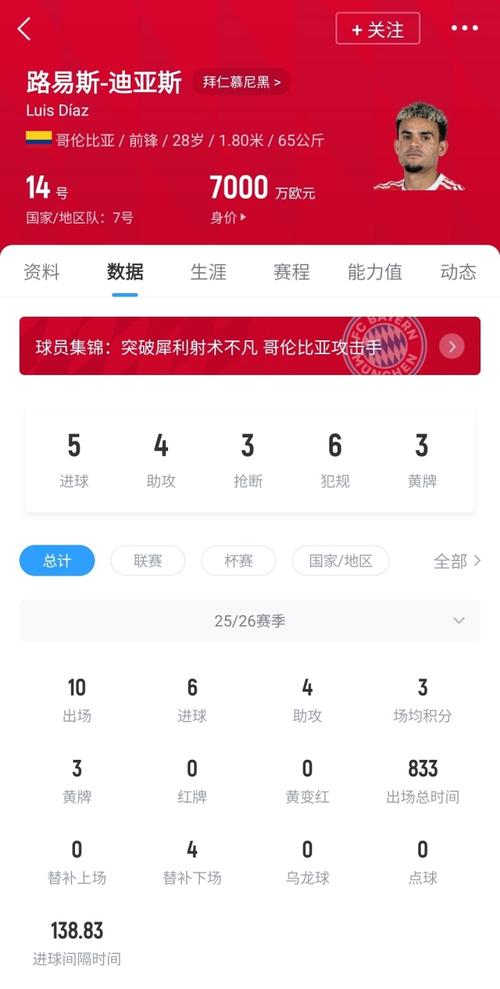 10 games, 6 goals and 4 assists! TA: Criticizing 70 million signing Dias? But he is the best choice for Bayern to sign
