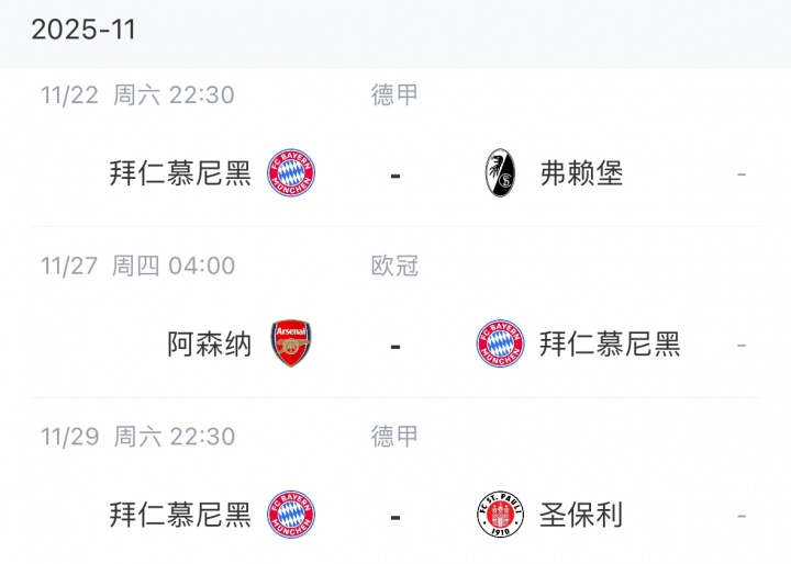 Bayern’s follow-up schedule↓