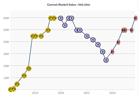 Five years later! Pulisic s value rose to 60 million euros career record, falling to 25 million two years ago