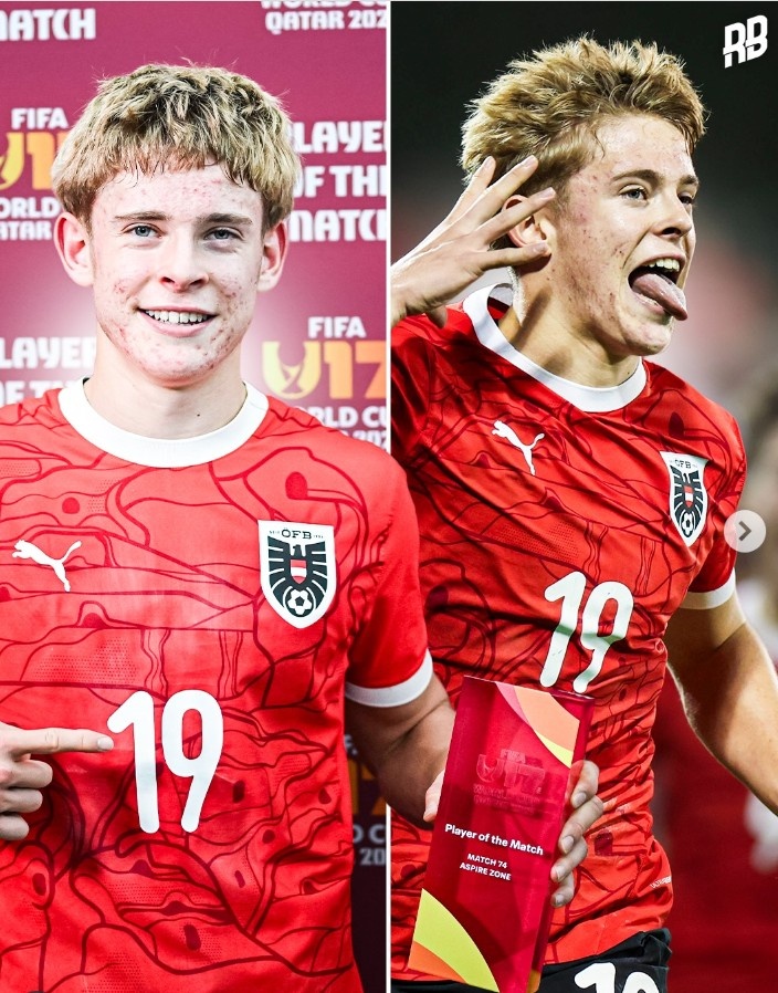 Moser is by far the most dazzling player in the U17 World Cup, leading the tournament's top scorer with 8 goals and leading the Austrian team to the final. Bayern director Christoph Freund knows the youngster from his time at Salzburg and has been keeping an eye on him.