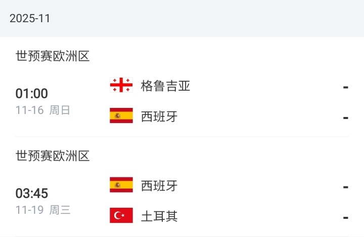Spain November schedule↓